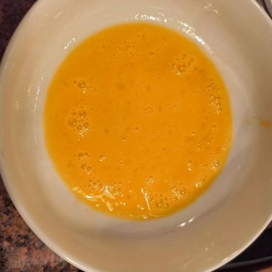 Scramble eggs in a bowl well. Add the Cinnamon Sugar stir well.