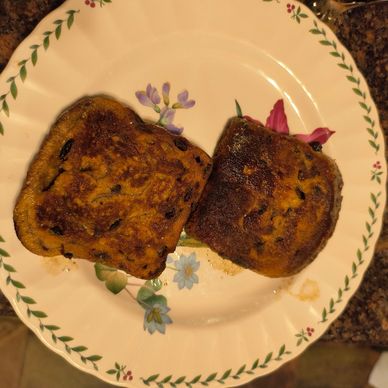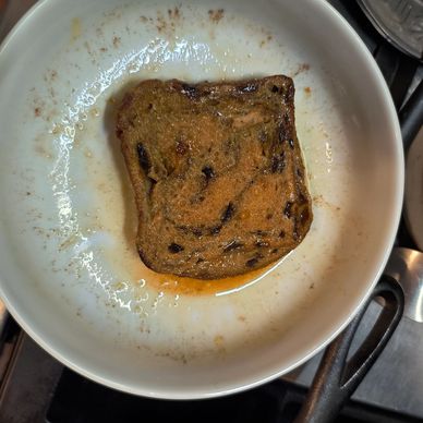Add 2 tbsp butter to a skillet. Melt. Place soaked bread in the skillet and cook on medium til bread browns on both sides. Takes about 5 to 8 minutes.